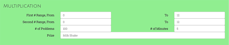 - Enter the criteria that is most appropriate for your child/student (number of problems, allowed minutes, and the prize)